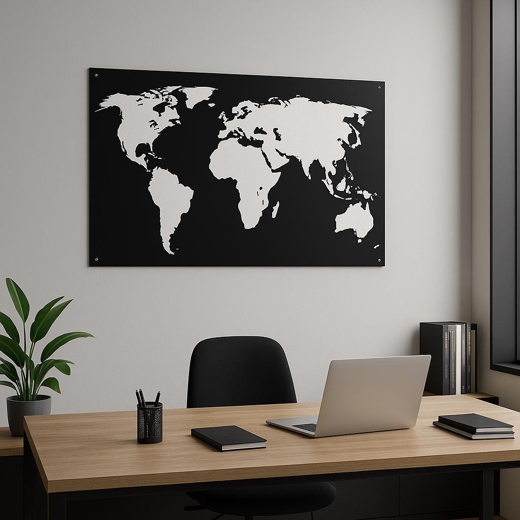 World | Minimalist Dünya Haritası Metal Duvar Tablosu Siyah