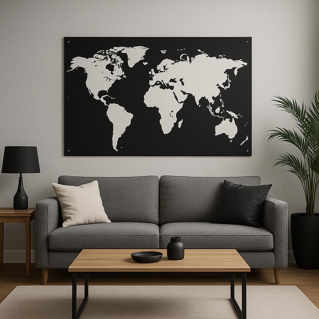 Bu dünya haritası duvar sanatı ile evinize veya ofisinize cesur, zarif ve seyahatten ilham alan bir görünüm katın.