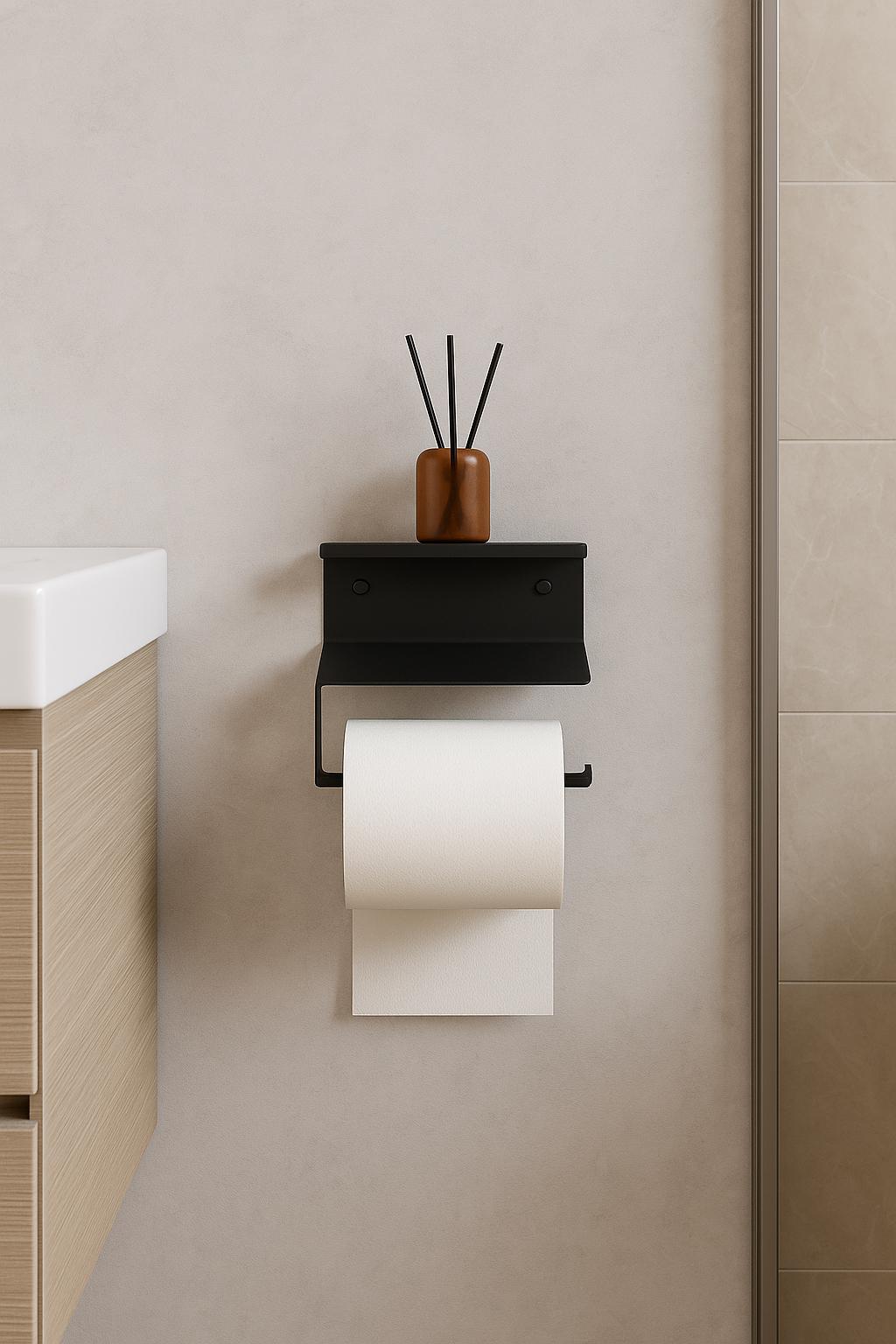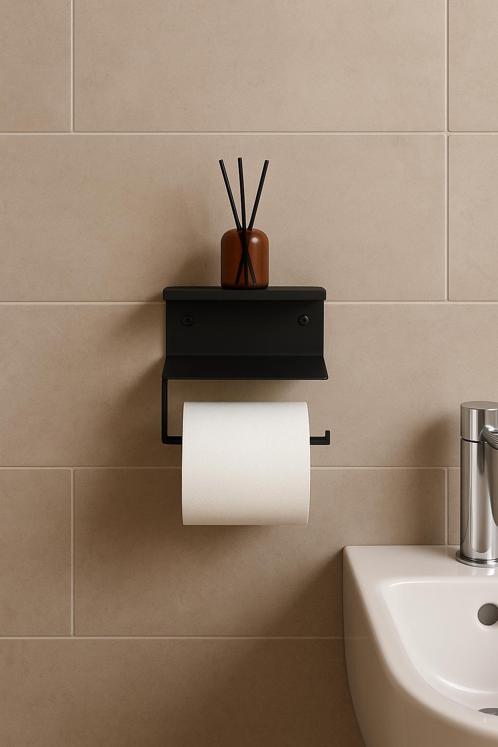 Bu şık ve işlevsel siyah metal raflı tuvalet kağıdı tutucusuyla banyonuzu güzelleştirin. Minimalist tasarımı, mekanınıza modern ve lüks bir hava katarken aynı zamanda pratik ve düzenli kalmasını sağlar.