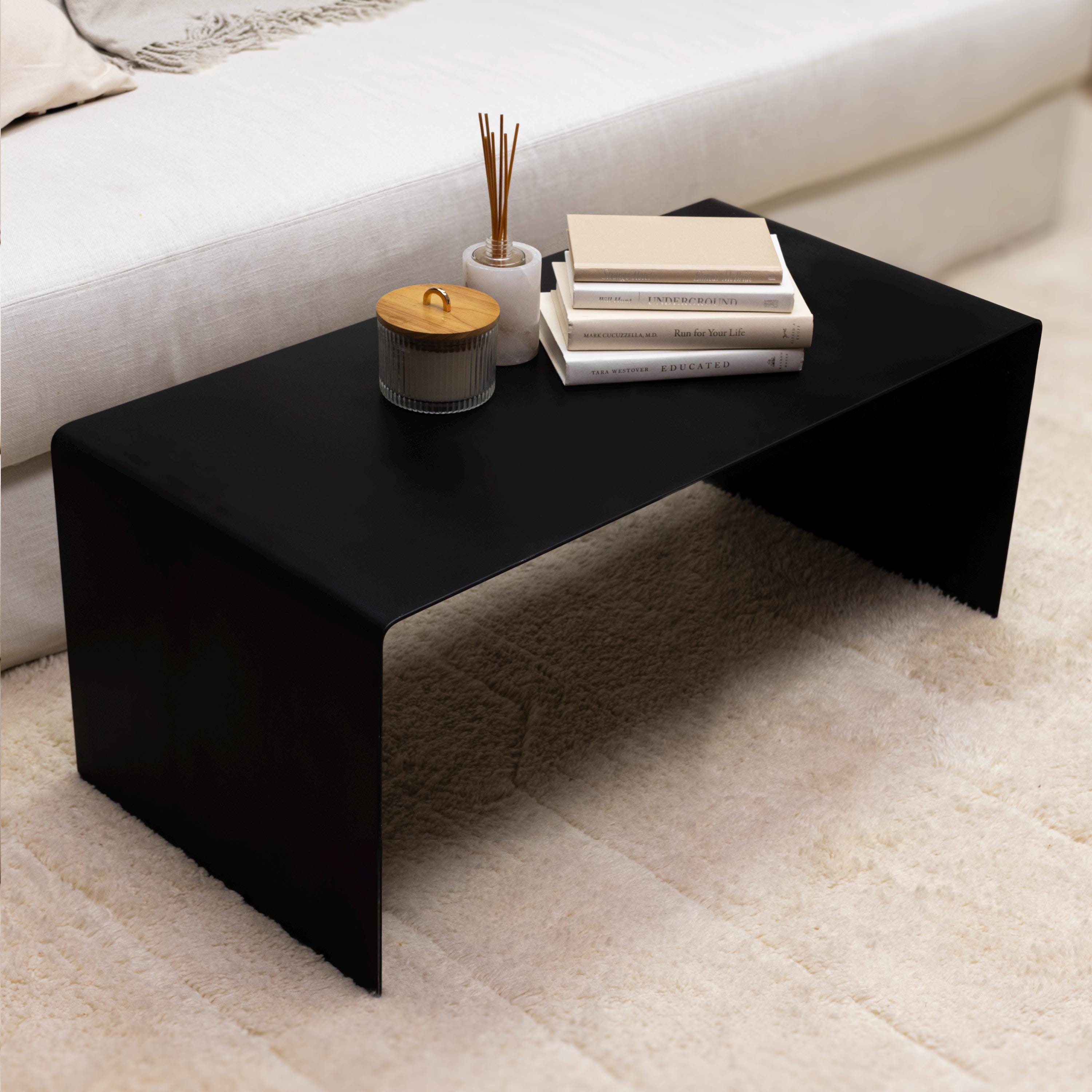 Minimalizm ve zarafet düşünülerek tasarlanan bu çağdaş sehpa ile yaşam alanınızı güzelleştirin. Dayanıklı metalden üretilen ve pürüzsüz mat siyah kaplamaya sahip bu sehpa, kesintisiz şelale kenar tasarımıyla her dekorasyona kolayca uyum sağlayan temiz ve modern bir estetik sunar.