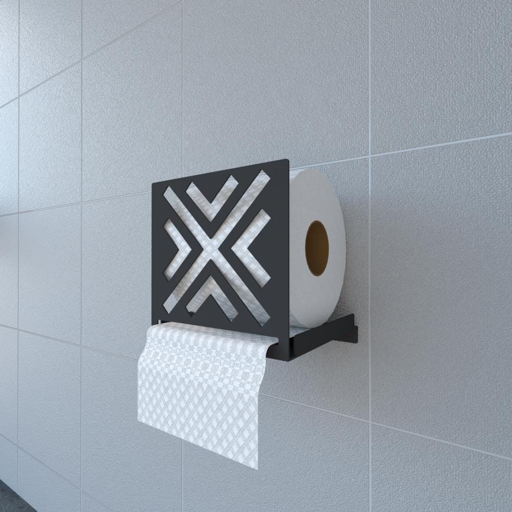 Dayanıklı metalden üretilen bu duvara monte rulo tutucu fazla yer kaplamaz ve küçük banyolar veya misafir tuvaletleri için idealdir. Geometrik kesim deseni, fazla gösterişli olmadan hoş bir dekoratif dokunuş katar.